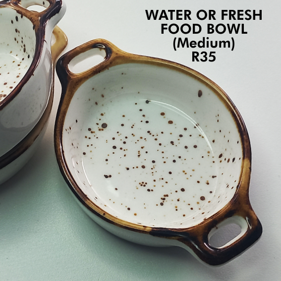 Small glazed ceramic bowls for suitable for water or fresh food.